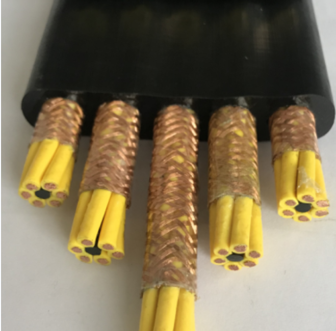ZR-YVFRPB | 阻燃耐磨耐油彈性體絕緣和護套銅編織屏蔽扁電纜電纜 |