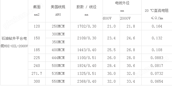 石油鉆井平臺WDZ-0IL-500MCM一,石油鉆井平臺WDZ-0IL-500MCM主要適用額定電壓2kV及以下的石油平臺鉆井架上大功率電機、壓縮機及各種泵類的電力傳輸系統(tǒng)及船舶動力系統(tǒng).電纜具有良
